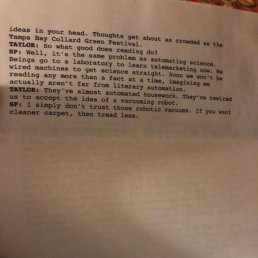I never received a copy of Foodie, but I did read excerpts and was fascinated by its polished, philosophical prose, an enigmatic interview with “Prickett” and a certain (fictional?) Professor Sherbert Taylor,1 and by the book’s alternative/anonymous distribution method.